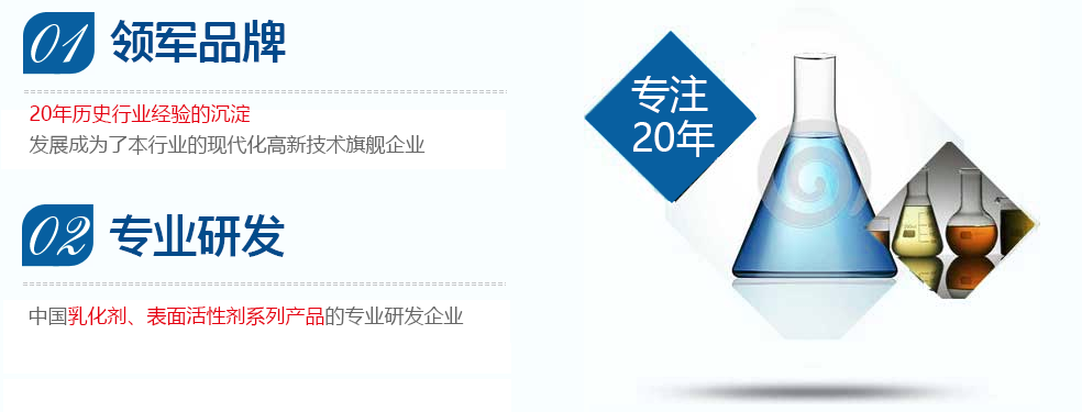 本公司依托淄博的化工區(qū)位優(yōu)勢,掛靠大中專化工院校及科研單位,專心致力于非離子表面活性劑的開發(fā)、應用,是國內較早從事研究、開發(fā)、生產非離子表面活性劑的廠家之一,主要產品有:烷基酚聚氧乙烯醚(OP、NP、TX)系列、脂肪醇聚氧乙烯醚(AEO)系列、(平平加)系列、失水山梨醇脂肪酸酯聚氧乙烯醚(吐溫系列)、失水山梨醇脂肪酸酯(斯盤系列)、椰子油二乙醇酰胺(6501)、滲透劑系列、十二烷基苯磺酸、脂肪醇聚氧乙烯醚AES、油酸、三乙醇胺、椰油酰胺丙基甜菜堿CAB-35、聚醚系列、添加劑系列、聚乙二醇系列、乳化劑酯醚系列等等,產品遠銷全國各個地區(qū),客戶上千余家,乳化劑在用戶中享有很高的聲譽,市場占有率逐年攀升。近年來,企業(yè)...